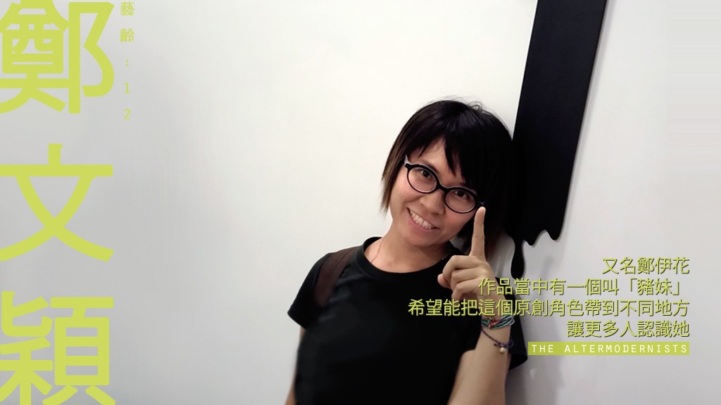 我經常給人不快樂、心事重重的感覺,「豬妹」某程度上反映自己,希望別人看到她扁著「豬咀」會微笑一下,不要過份擔心她!「豬妹」擁有一對線眼,沒什麼表情,對所有事情好像都沒有態度,但實際她有自己怪怪傻傻的想法!雖然「豬妹」給人像小孩的感覺,我視為她最忠於自我的作品,創作時我保持自己最真誠的喜好和風格,不扭曲。我希望透過我的手繪卡片、印章等手作媒介,跟大家作交流,讓更多人認識「豬妹」。