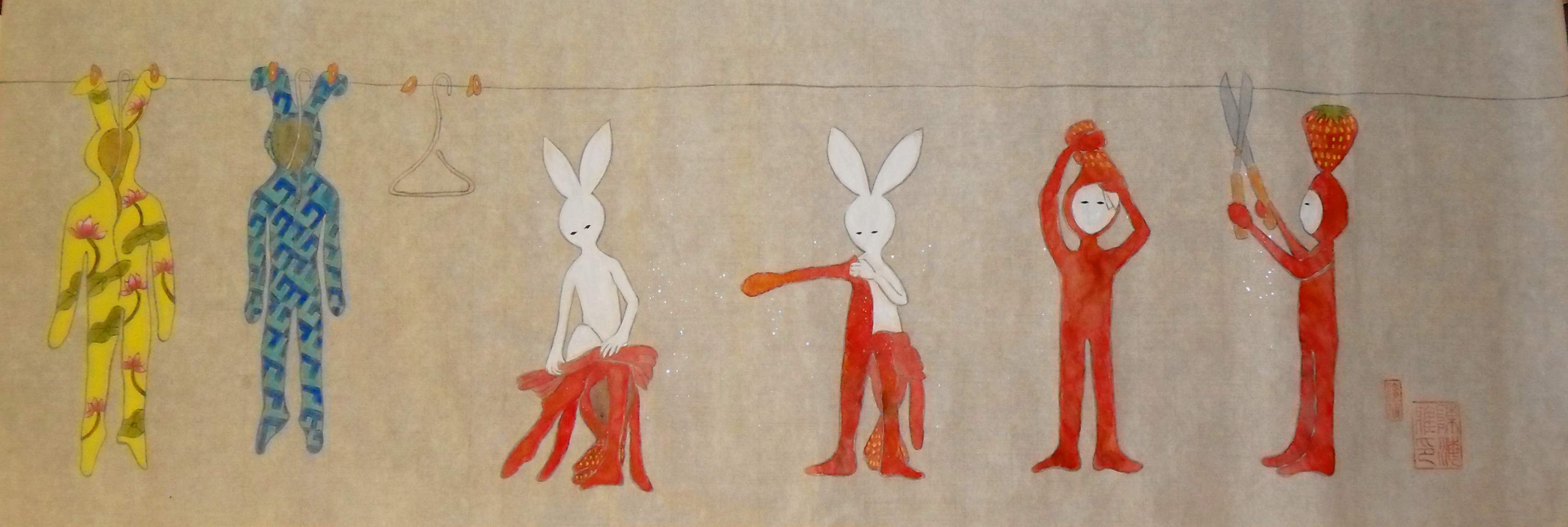 其實自己不特別喜歡小動物,要畫兔仔是因為多年前在油麻地百老匯電影中心的精品店看到一個非常有趣的兔仔匙扣,可是當時没有買,這事一直耿耿於懷,覺得自己欠了兔仔。早年想在工餘時間畫visual diary 打發時間,想到要畫一個主角,第一時間就想到兔人。