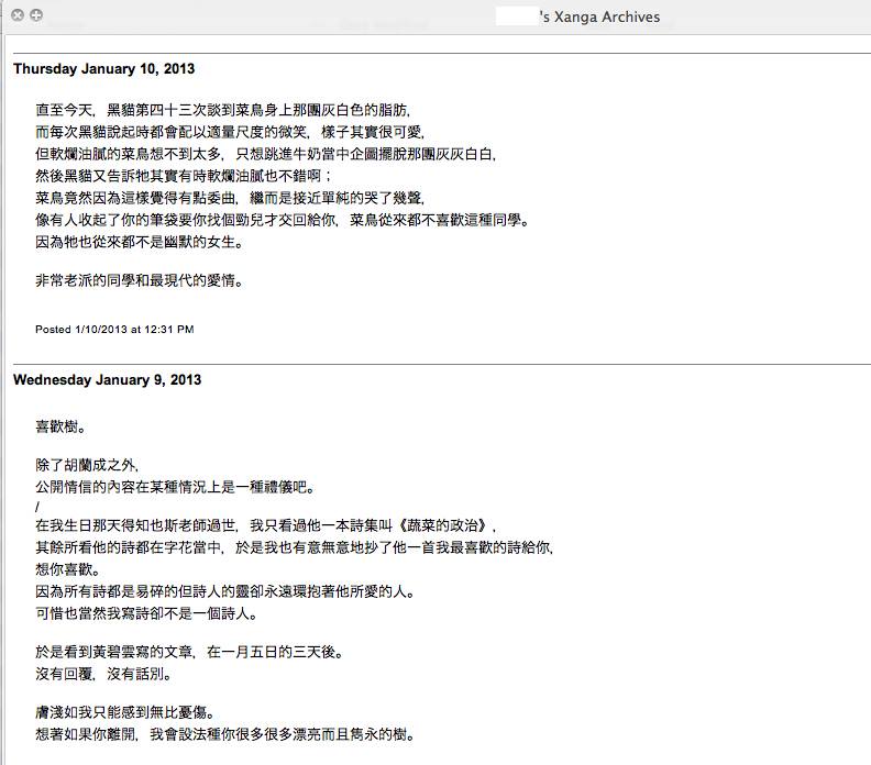 (下載了自己的xanga archive中的一小節錄。)